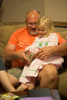 Yesterday was Jerrica’s birthday. It was a very special day, and I think it turned out great for her! Grandma Barb came into town to spend the weekend with her. She woke up to balloons hanging from her doorway with notes written on them (A family tradition). Then she got to pick what she wanted for breakfast. She decided on Chocolate, peanut butter, banana smoothies. Her birthday lined up on a Sunday this year so we got ready to go to church. She wore a new dress that Grandma Horrocks gave her and we went to church.