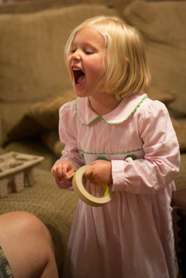 That night we had her favorite dinner – Spaghetti and meatballs. She had a cake decorated like the movie Frozen (Although I didn’t put a frozen character on top). I do not know how to decorate cakes well, but I had a friend come over and help teach me. That night we had a couple friends come over from church and be here while we sang and had cake. He was a trooper and even let Jerrica and the kids decorate him with masking tape. It was a fun night.