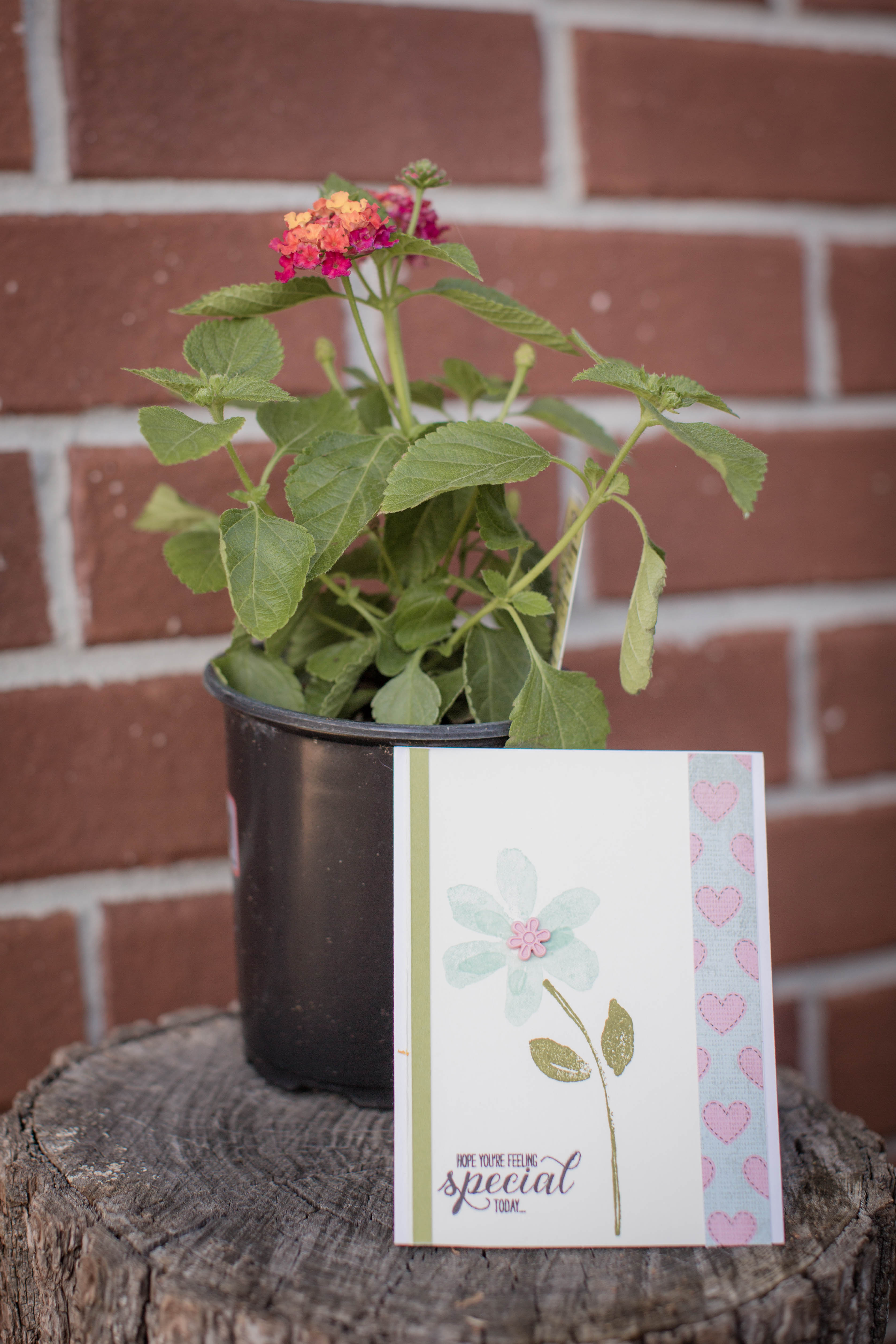 Today was a good day. I ran into a friend while I was at Lowes with the two little kids buying seeds for our vegetable garden.  It was so great so see her and we visited for several minutes. Then later that day I was surprised when the older kids got home from school to a card and beautiful flower on my front step (from that same friend).  It was so sweet I probably smiled for 5 minutes.