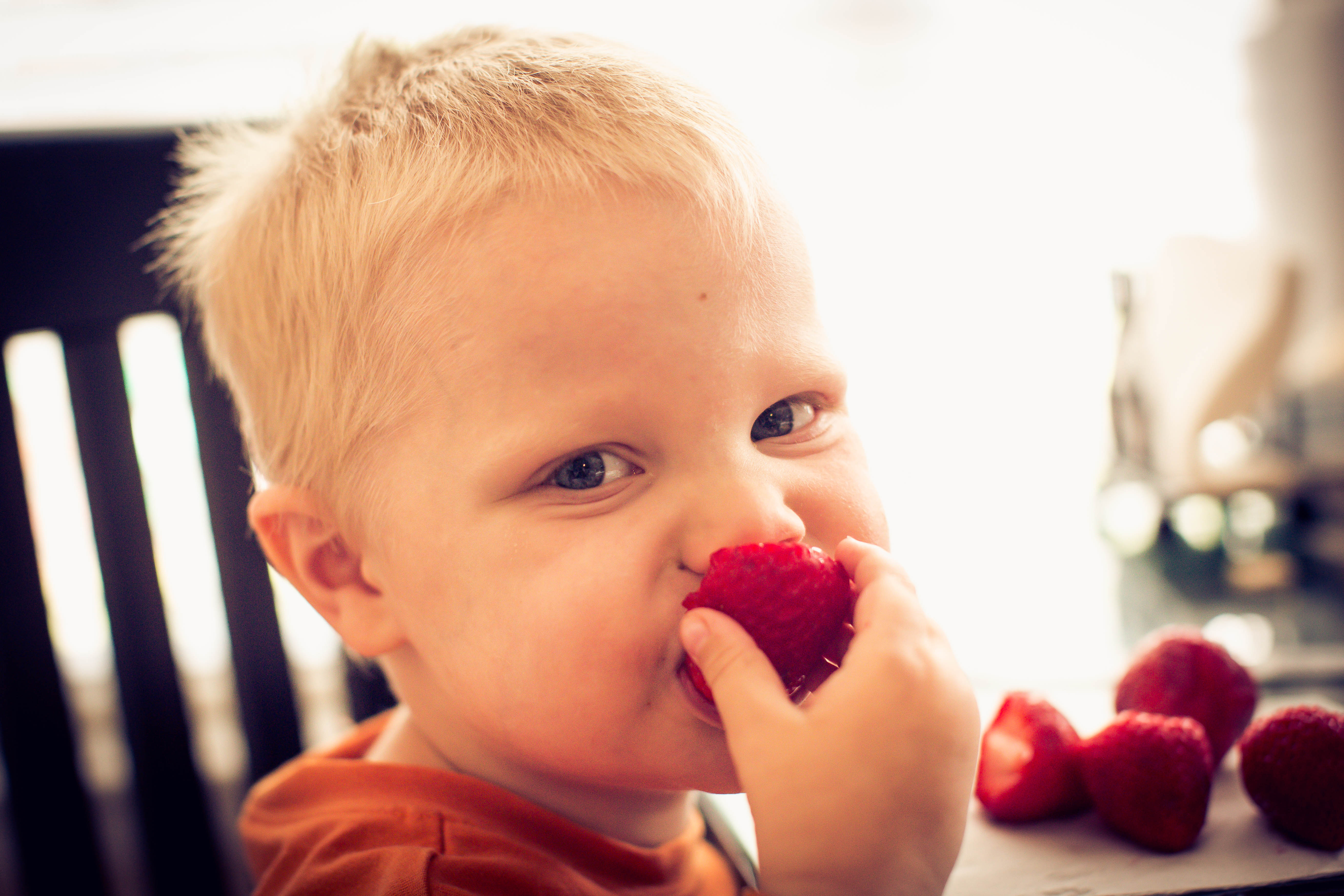 Strawberries!  I went to the grocery store today with the two little ones.  Phoenix likes me to tell him what items we are going to get, so that he can help me remember.  He also is sure to let me know if we are ever out of bananas and need more.  Today after getting bananas he saw the strawberries and got super excited.  I couldn’t help getting some.  I cut them up and we all had strawberries with lunch.  It was fun seeing their excitement as they ate and had juices running down their chins.