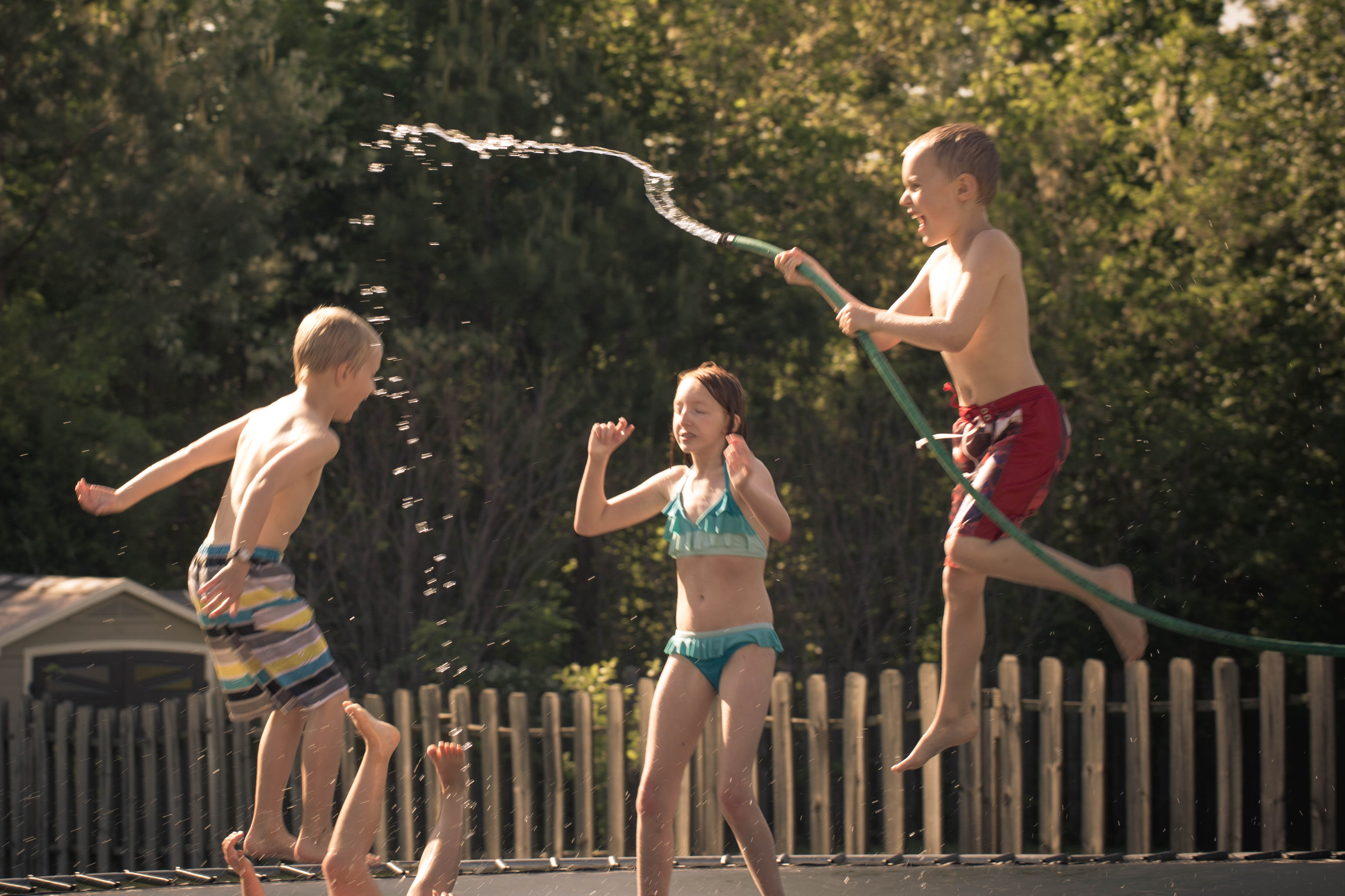 Today’s photo is a little blurry but I love it anyway.  From catching Xander jumping with the hose to Jerrica’s feet in the bottom as she jumped onto her back.  It was a wonderful day and the kids had a great time playing outside with friends.