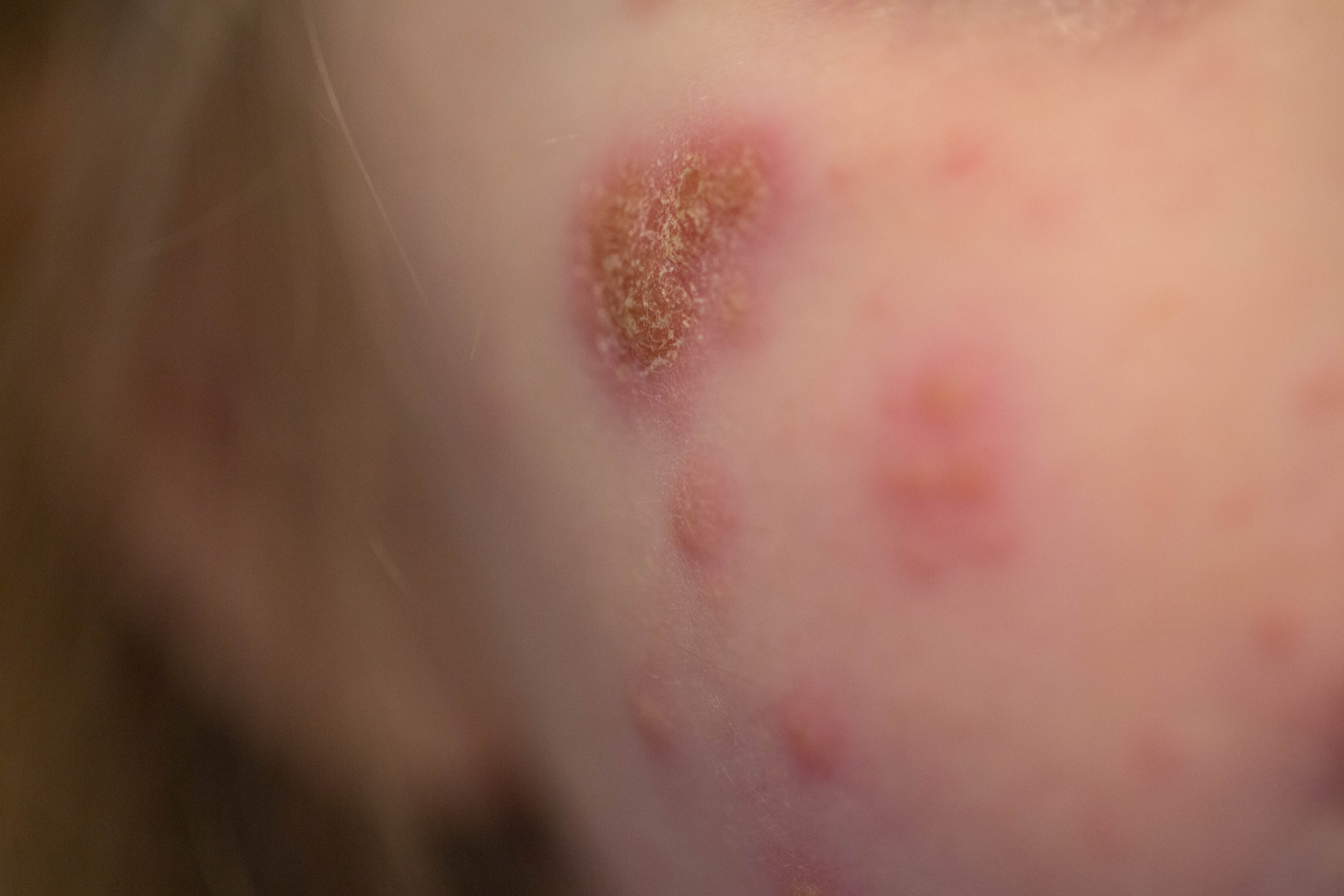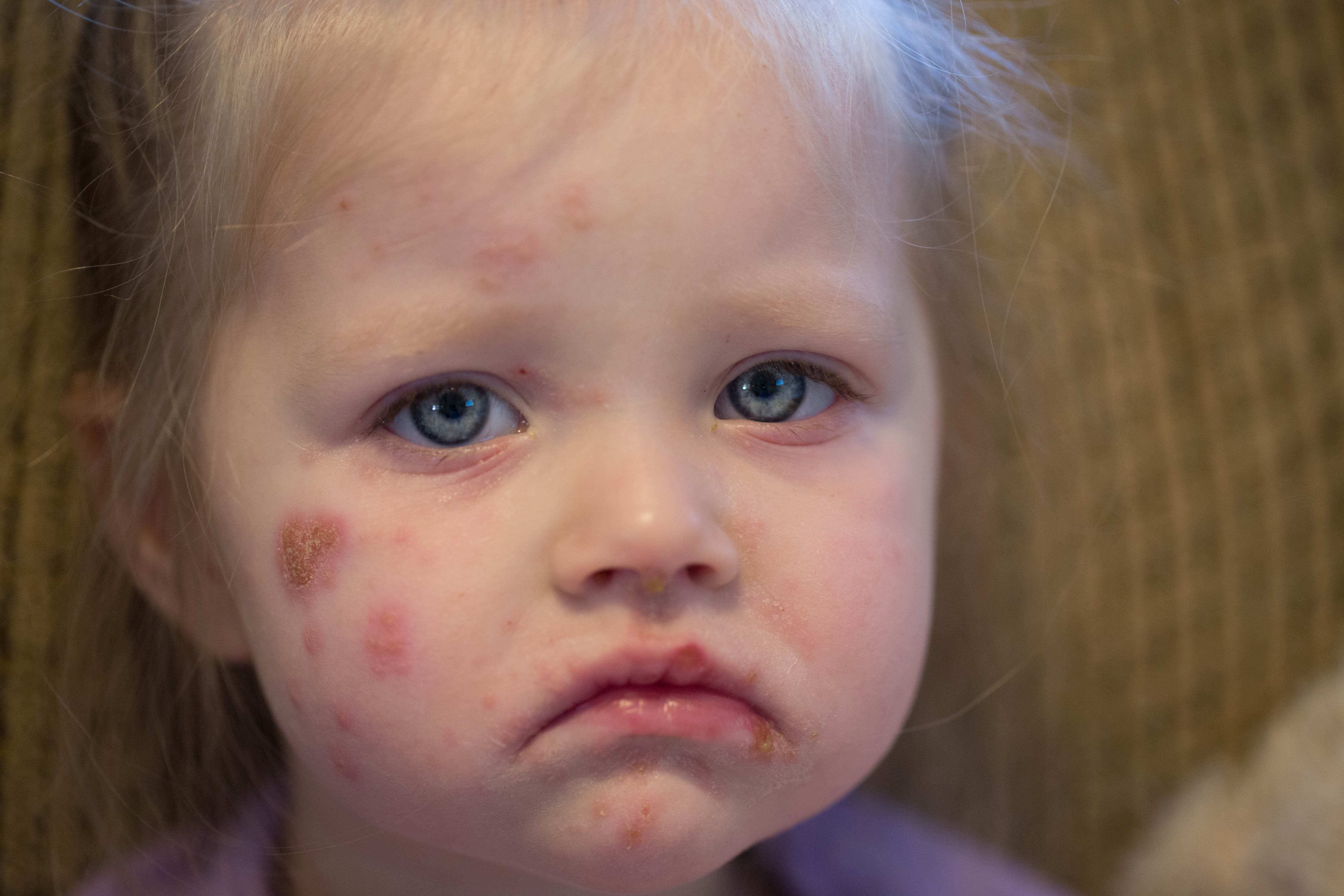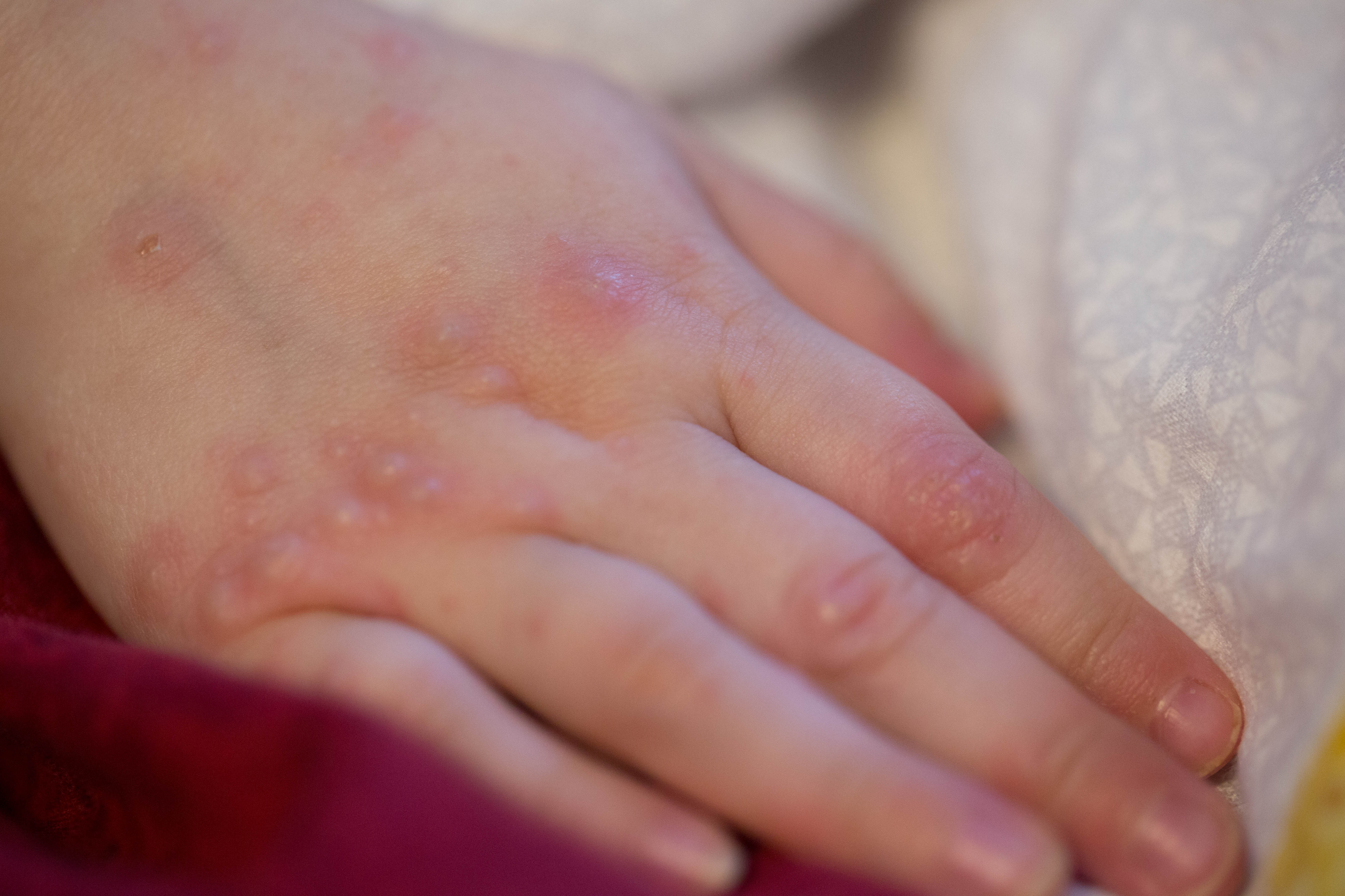 Wednesday afternoon I took Scarlet (and the 4 other kids because they were home from school) to the pediatrician’s office. Scarlet had woken up with more bumps on her skin that had appeared over night. She normally suffers from chronic eczema, but this was different. On her hands it almost looked like little bug bites – almost like she had gotten in an ant hill.